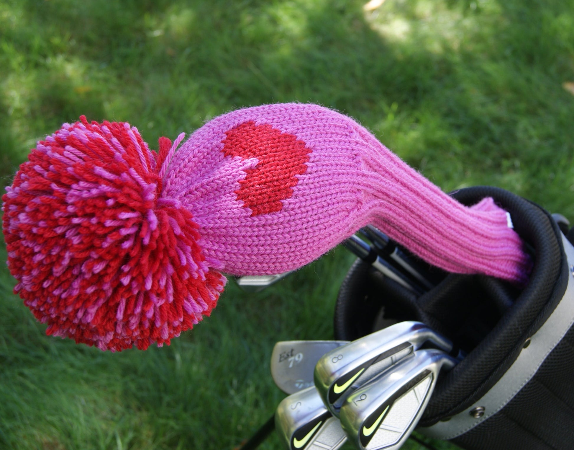 Handmade knit headcover with a fun heart motif. See swatch photo for yarn colors.