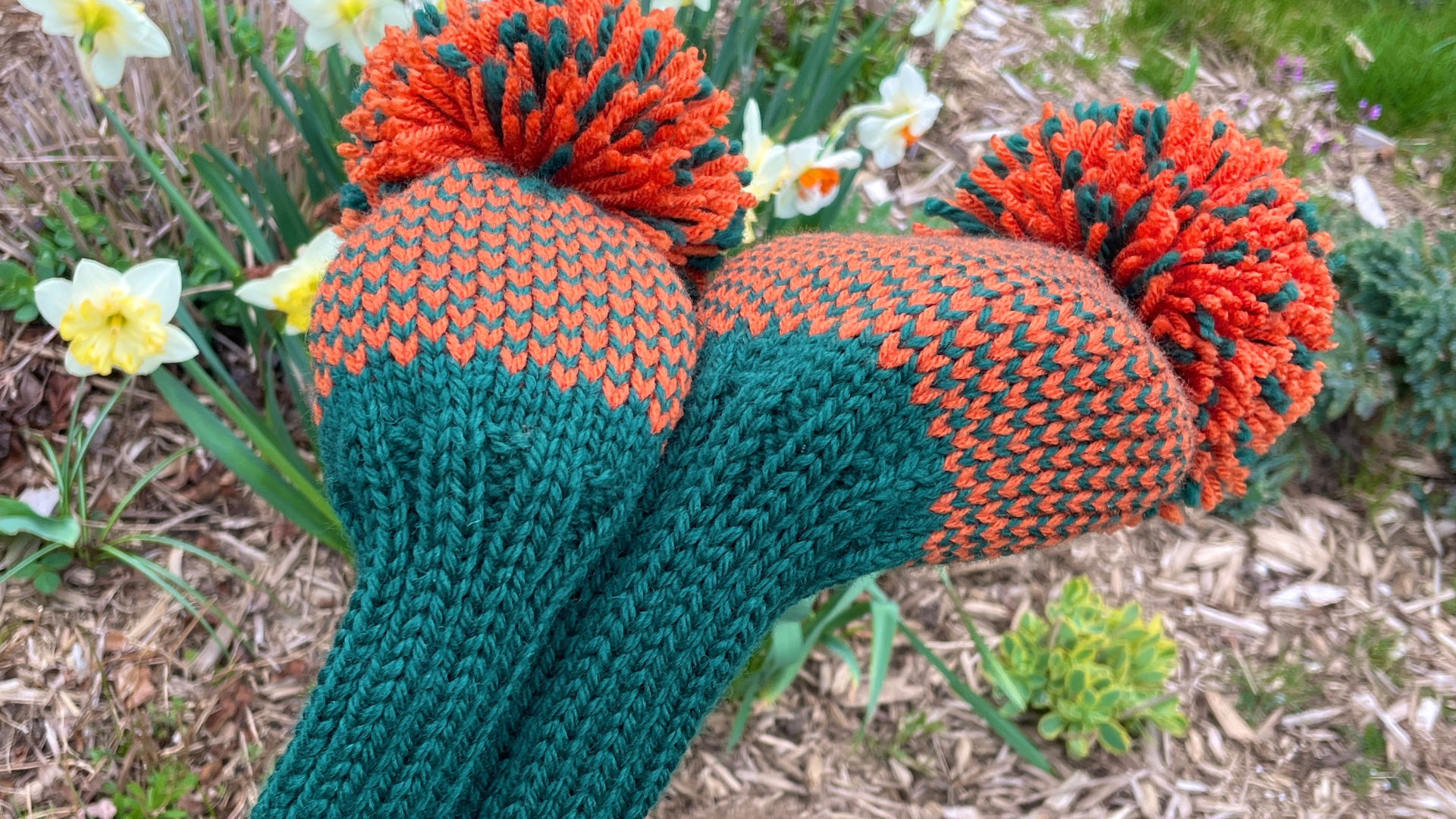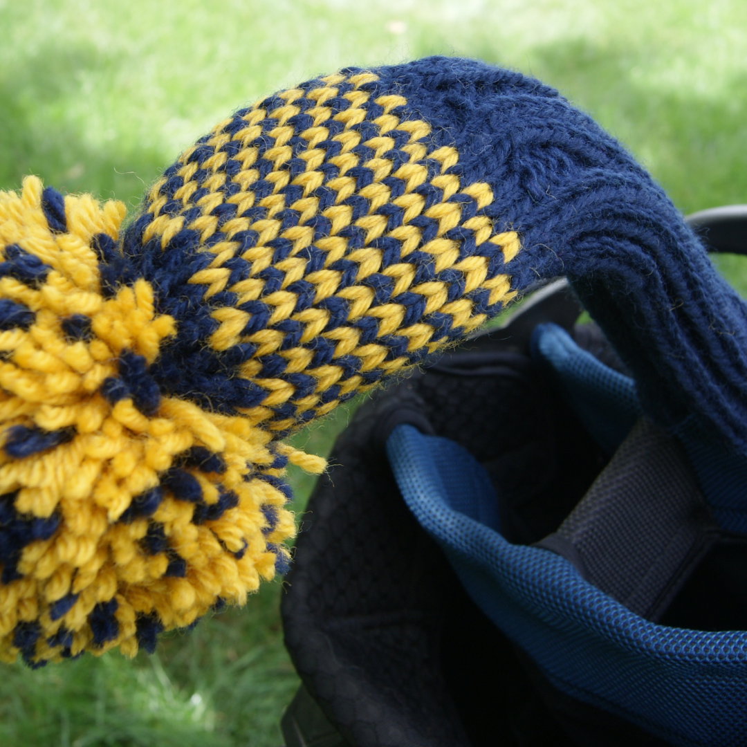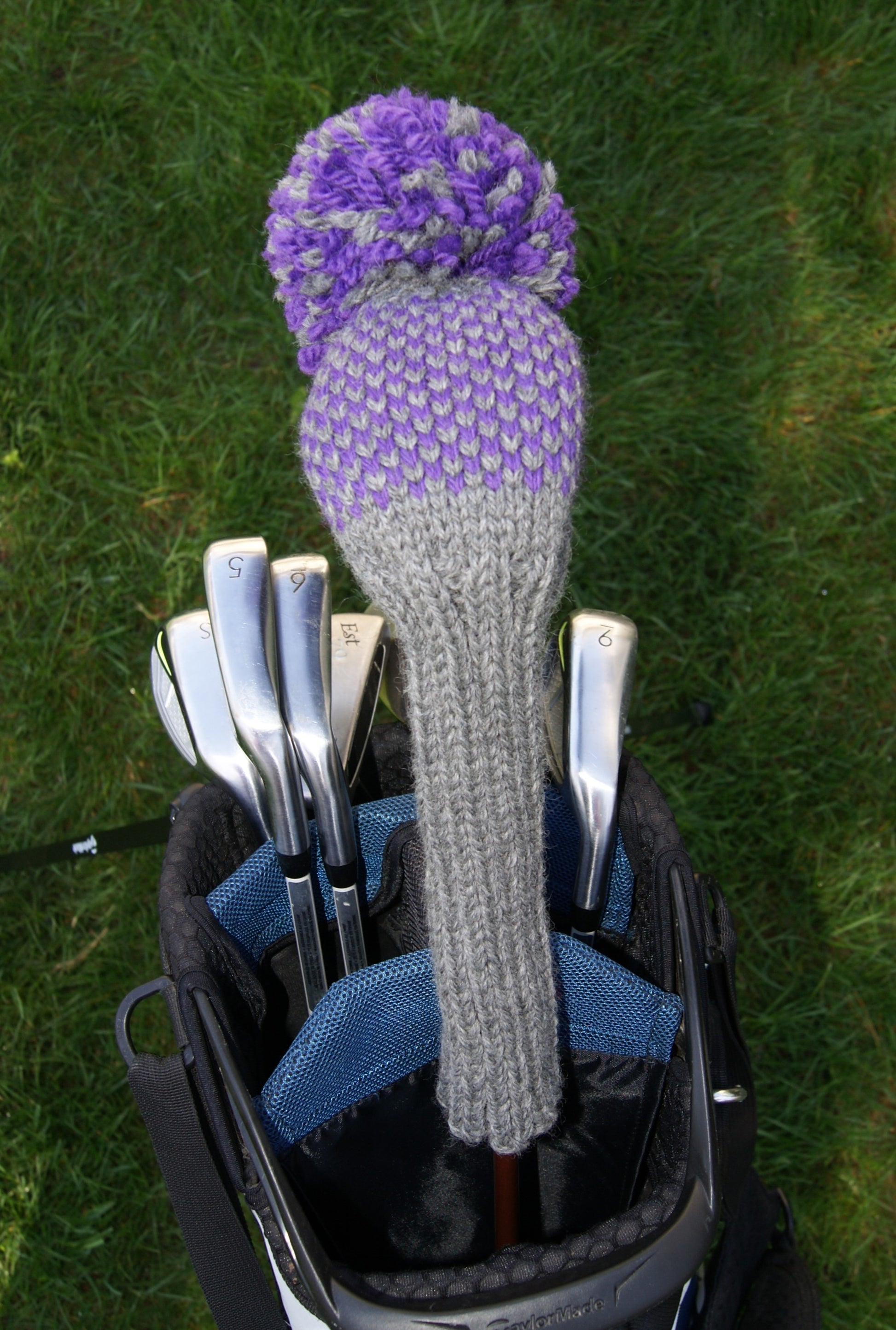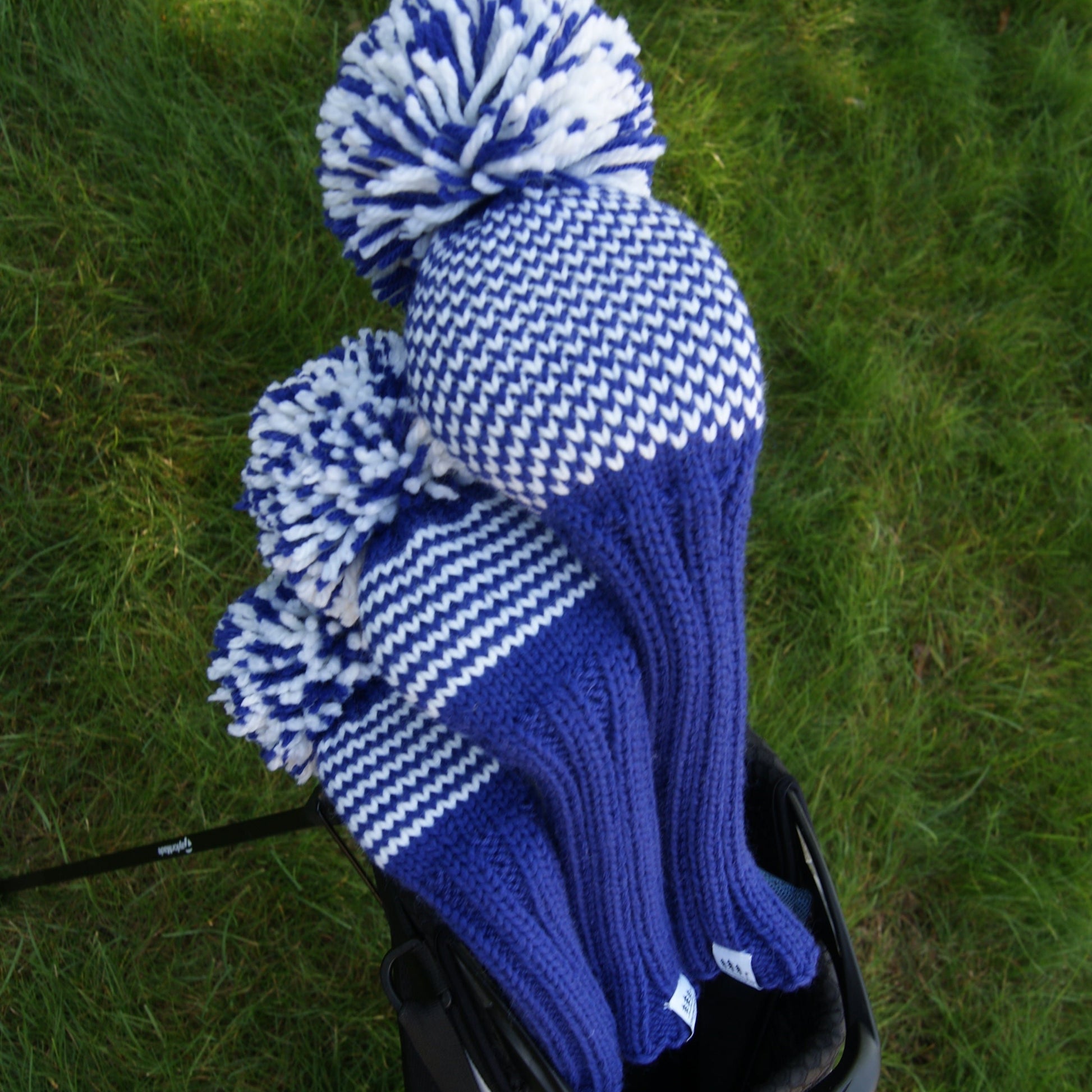 Handmade knit headcover with a small check/houndstooth pattern. See swatch photo for yarn colors.